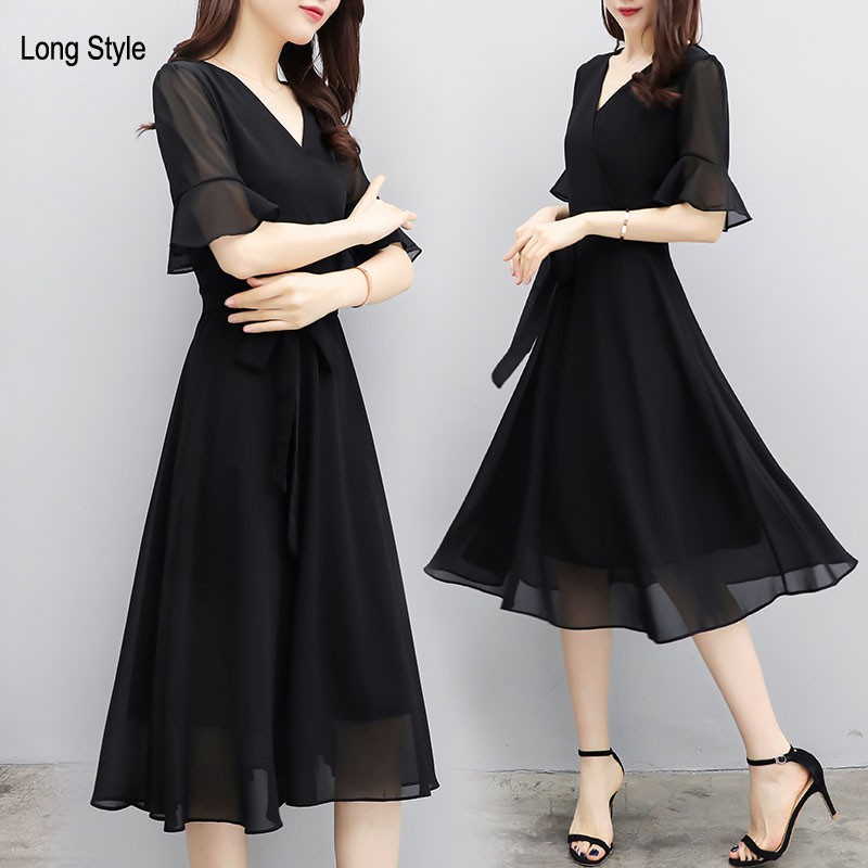 S 4xl Korean Women Short Sleeve Dress Casual Dinner Party Chiffon Midi Dresses Shopee Malaysia