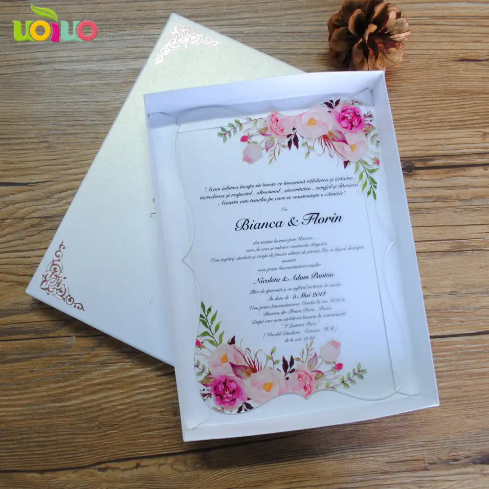 Nice Flower Acrylic Wedding Invitation Card Customize Design Luxury Invitatons With Box Cards Invitations Aliexpress